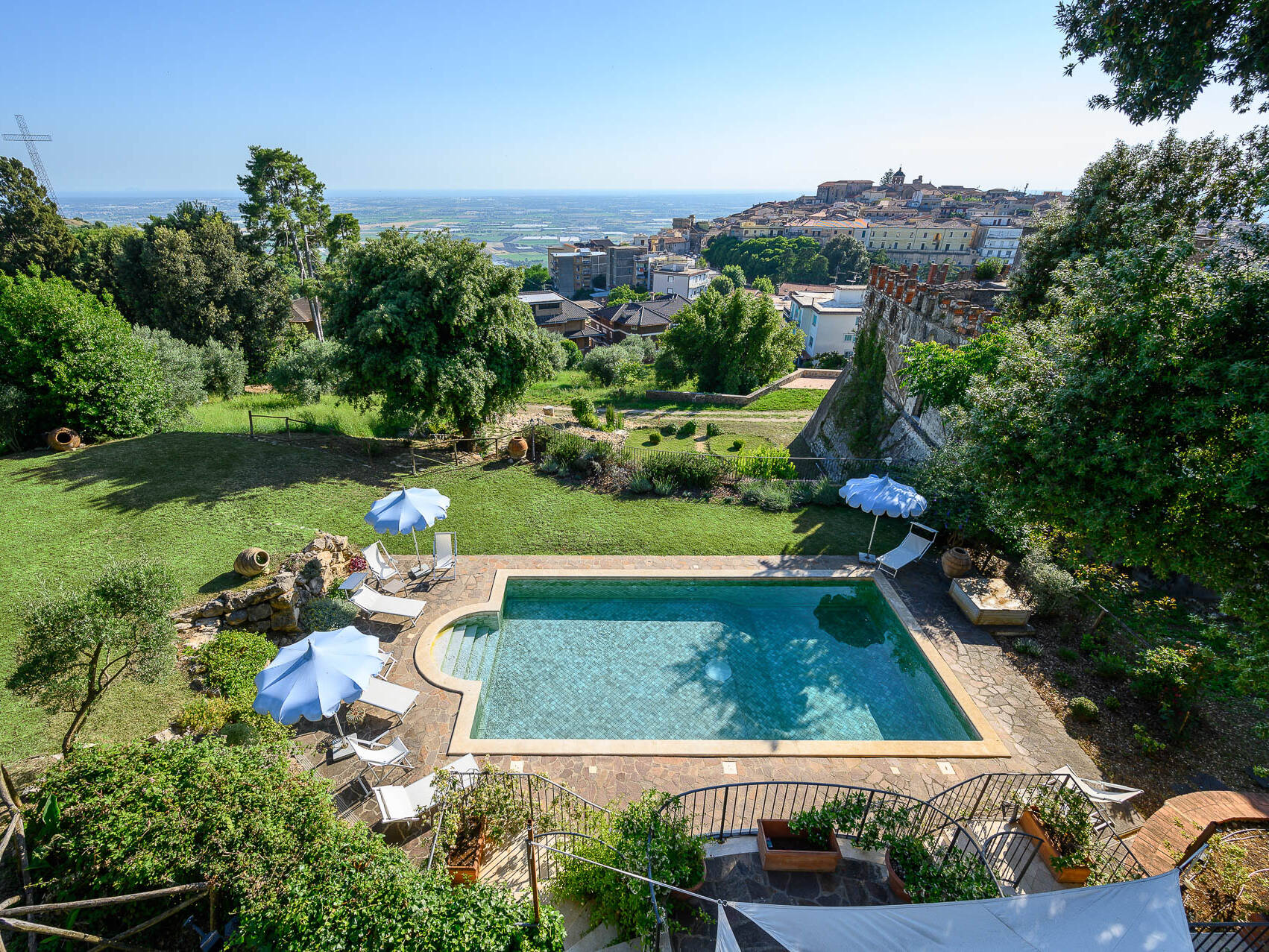 From the villa, guests can enjoy panoramic views of Sezze, the Lepini Mountains and the Mediterranean Sea. Upon exiting the villa property, guests can explore Sezze, a quaint Italian village that predates Rome. Local cuisine, spirits, cappuccino and gelato are just a short walk away.